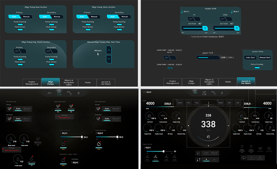 The great thing is that EmpirBus gives practically endless possibilities. From turning on devices, reading from sensors, creating operating logic and graphics on MFD with buttons and reading parameters, to programming alarms, replacing buttons and device fuses as well as integrating with other suppliers via CAN or NMEA2000.